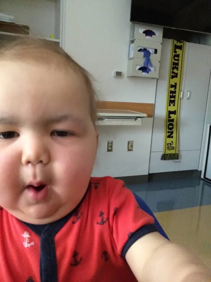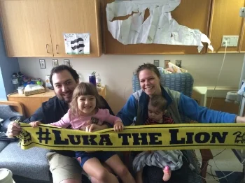 What made this #LukaTheLion #ScarfChallenge gesture so meaningful was that it was during Luka’s most challenging hospitalization during the fall of 2015. Before then, even though Luka was very sick, most of the time he was happy and playful. Sadly, during what was his last hospitalization, Luka was fighting for his life. That’s why this challenge took on a new meaning. It became a way for people to show they cared and were thinking of Luka and his family during this very difficult time. That even though there wasn’t much tangibly they could do to help, they could still hold up his unique scarf and be his fan, showing his family they are on Team #LukaTheLion. The scarf, always with Luka and family in the hospital room, became a window to the rest of the world and the enduring support of Luka’s fans, or The Pride, helping him to never feel alone.