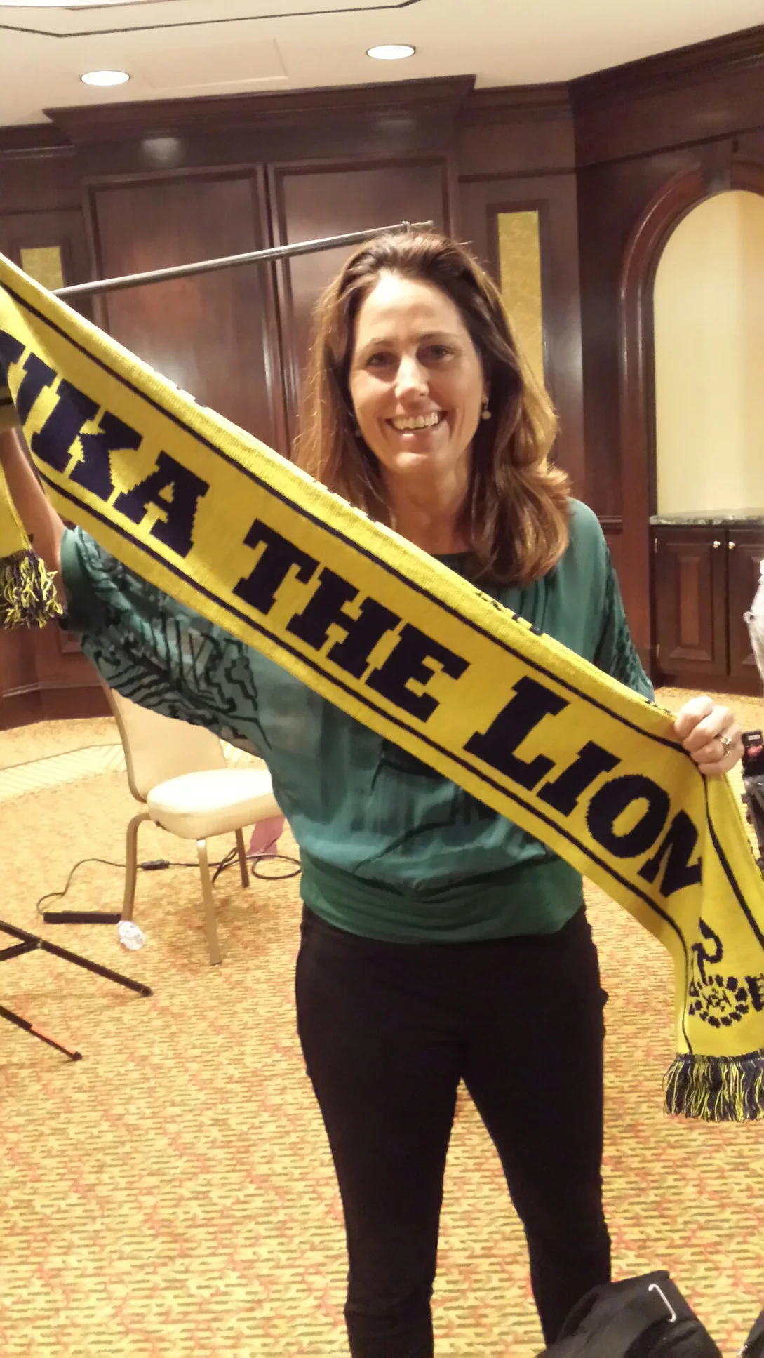 Yet, the scarves may not have taken off as the international #ScarfChallenge movement if it wasn’t for the audacious nature of Isaac, the middle brother of Zach and Seth, and Luka’s uncle. While on production with ESPN, Uncle Isaac shared the #LukaTheLion scarf on a whim with Super Julie Foudy, a decorated U.S. soccer legend. He asked if she could take a picture with the scarf explaining, “The kid’s in a tough spot,” and Julie willingly held up the scarf, smiled, and took a photo. Just like many firsts she’s lead, Julie became the inaugural #LukaTheLion #ScarfChallenge champion supporter. Isaac knew that Luka’s father Zach and I grew up admiring Julie Foudy and the entire 1999 World Cup Champion U.S. Women’s Soccer Team. He thought a photo of a soccer sensation with the scarf would bring smiles to their faces during a tough time, helping them not feel alone. And it certainly did.