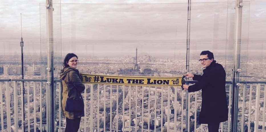 After reaching out to Ruffneck Scarves and being asked to design something unique for Luka, his Uncle Seth and Aunt Audrey (or “Dey Dey”) sketched out the #LukaTheLion scarf designs on a napkin over hot chocolate at a Parisian cafe. They were honored to capture the spirit of Luka’s budding support network of family and friends through a unique scarf design incorporating the lion image from a T-shirt made in Luka’s honor during his bone marrow transplant. Once designed collaboratively as a family over messenger while collectively watching the Arsenal match from their homes in Paris and Durham, Uncle Seth produced these unique scarves to send to family and friends so they could show support and cheer on Team #LukaTheLion. The dream of a unique scarf to honor Luka had become a reality thanks to Ruffneck Scarves and some brotherly creativity.