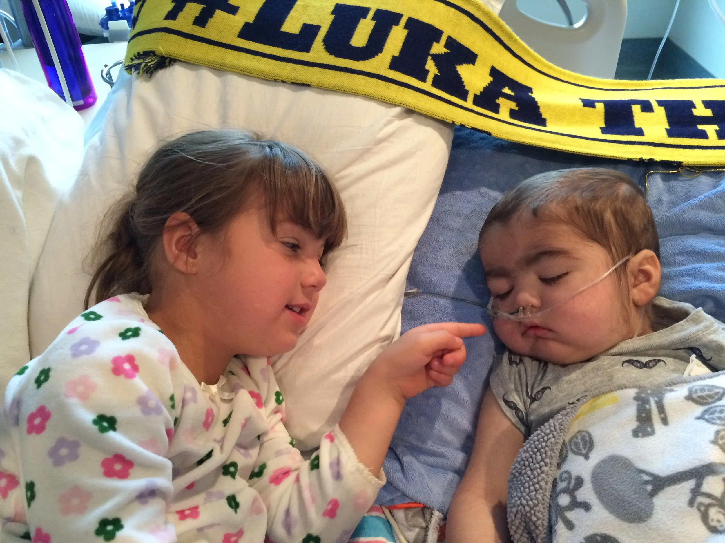 There are so many stories to tell, and we will get to sharing them. For now, we wanted to leave you all with this precious memory of Maia and Luka laying together on the big bed that they got special for us. Maia Bee was of course a sweet ball of energy wanting to read books and look at the objects. She did some sweet pats on his head just like she used to do and told him how much she loved him, as well as all of us gathered at that point - all grandparents, parents, and nurse Bren, who we love as well. At one point Maia ripped a beautiful picture that she made for Luka the day before of her, Luki, and "Kornelia - her sister in Poland" (who is actually a cousin, but darling enough). She often draws herself with Luki and then another person who she reaches for but can't quite place. It must be Maks and she hasn't fully understood it yet. Well, the picture was torn and I told her that we should tape it back so she can save it forever. She didn't like that and after a question she explained that she ripped it since she was sad that her brother wasn't feeling good. She wanted to know if he will sleep in the hospital forever. We then had the conversation that he won't sleep in the hospital forever and neither will mommy. I'll come home some day. When she asked where Luka will go, I responded that he will be an angel in heaven. She wanted to be an angel. So I explained that we are angels on earth. She wanted to be an angel with Luka and I responded that someday she will be. Then the most profound question, "Do all people become angels?" followed by an even more profound act. She then ripped a piece of the picture for each family member and shared it one by one. Luka received the piece that may have been symbolic of Maks. From literally tearing herself apart from her baby brother -- which couldn't be more accurate in reality -- to then sharing pieces of the picture with each family member who she loves -- is absolutely brilliant. Just like "her Luki baby," she handled it peacefully with grace.