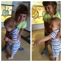 When we were preparing to be admitted to the hospital during a "Family Meeting" between us and some of the staff, they asked about how Maia is as a sibling of a frequently hospitalized brother. I responded, as I have above, only to get a jarring response from one person, "Just wait, that will change." Well, I'm happy to say that it didn't. If anything, their bond is closer and stronger even with the distance that they have had throughout this process. Today was no different.